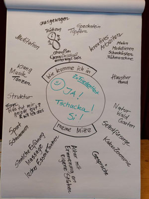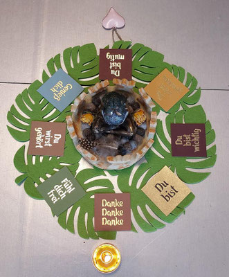 Auch diesmal bastelten wir innerhalb sehr kurzer Zeit ein Symbol dieser Lebensphase zum Begriff "Mütterliches Tun". Heraus kamen wundervolle Darstellungen. Sogleich tauschten wir noch Geschenke untereinander aus.